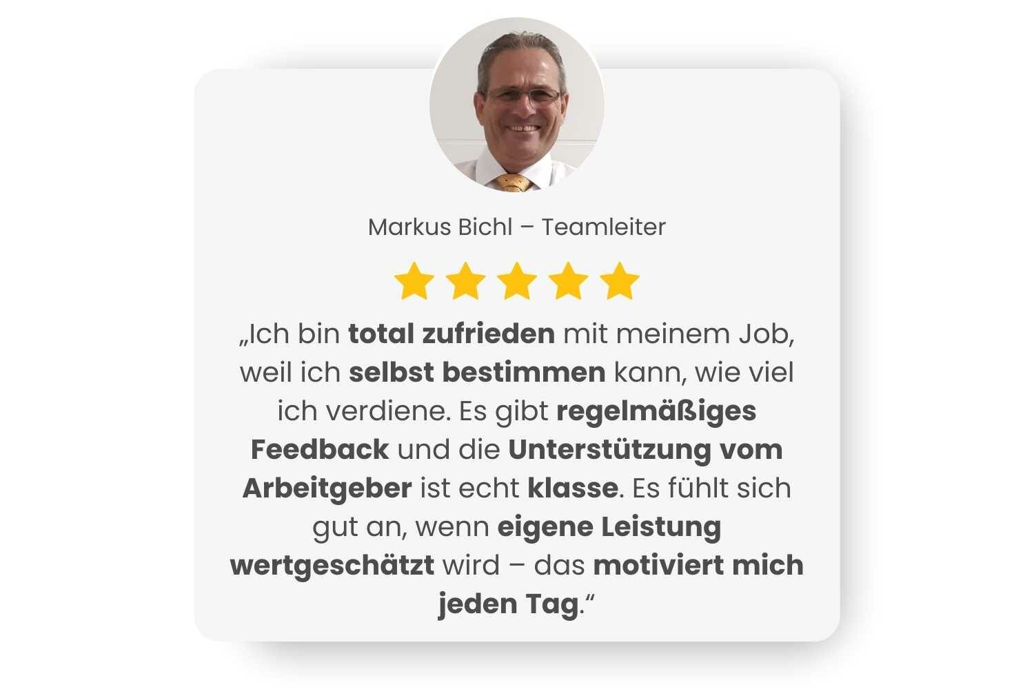 Das Bruttogehalt liegt bei ca. € 4.500 – € 7.500 pro Monat. Das Gehalt ist leistungsbezogen und nach oben hin offen. Das heißt: Du bestimmst selbst, was du verdienst!