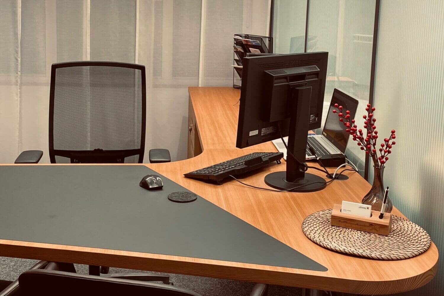 - Modernes Arbeitsumfeld (z. B. höhenverstellbarer Schreibtisch)