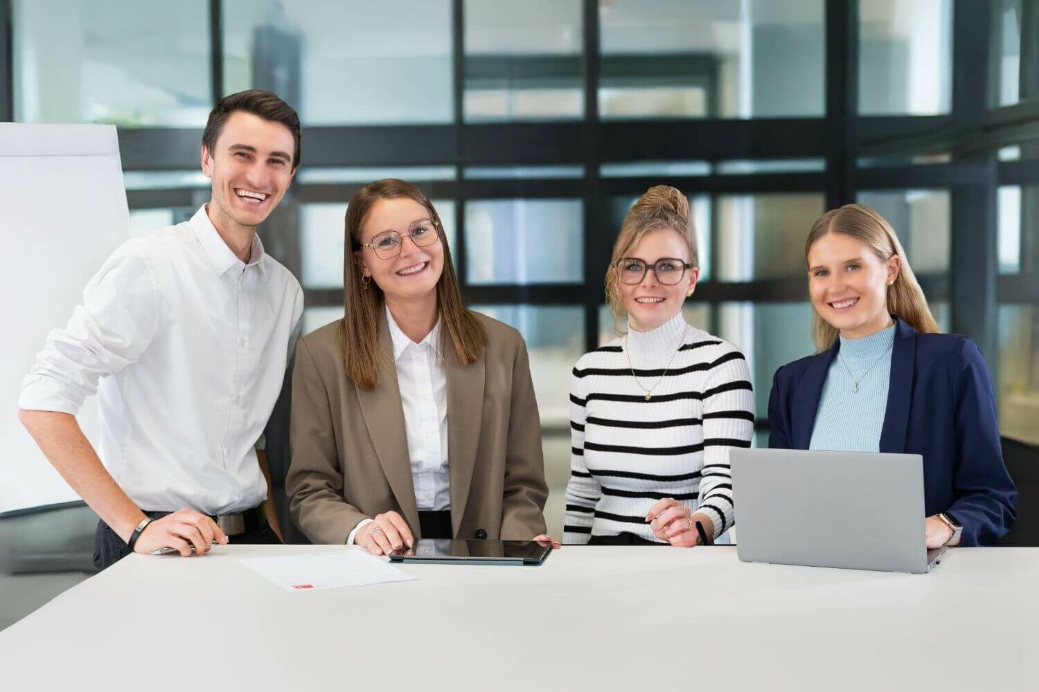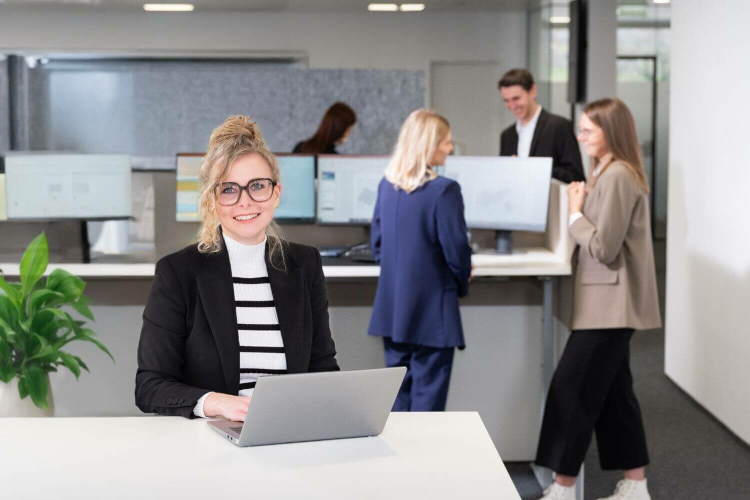 - Modernes Arbeitsumfeld (ergonomischer Arbeitsplatz, Diensthandy, Laptop)